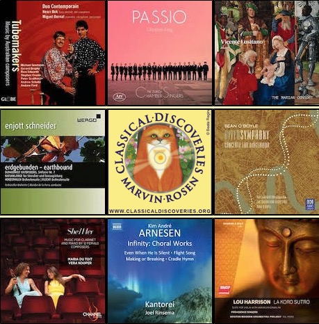 Plus music by Miguel Del Aguila, Carlo Farina, Carlotta Ferrari, Robert Moran plus others (including several short compositions in observance of Valentine’s Day)